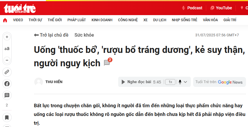 Cách khắc phục yếu sinh lý hiệu quả cùng bác sĩ Nam học hàng đầu Hà Nội